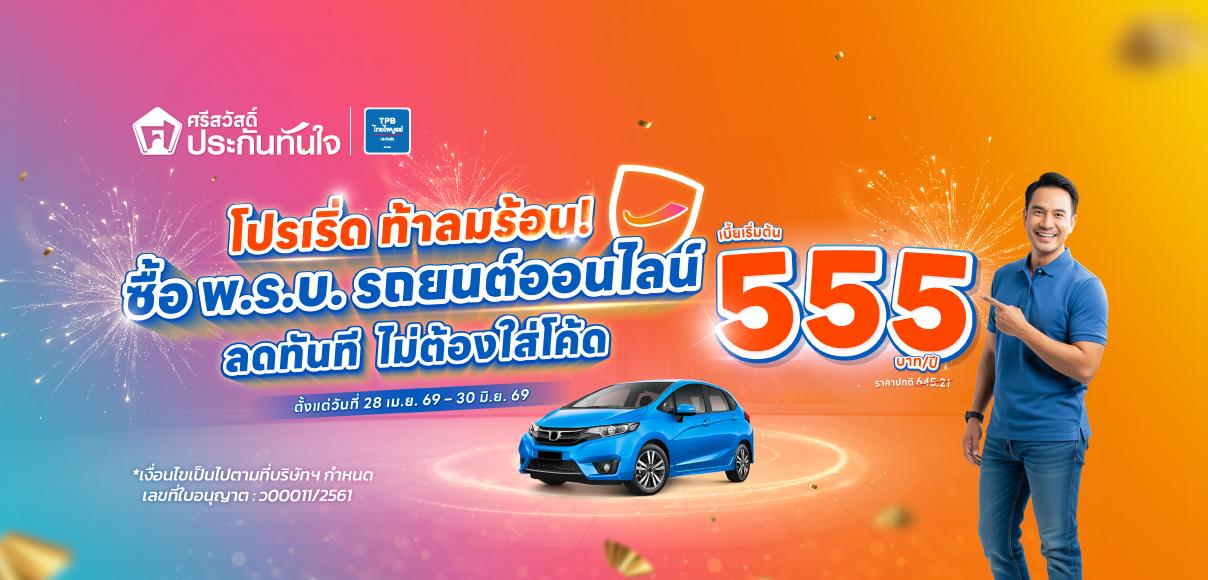 ต่อ พ.ร.บ. รถยนต์ง่ายกว่าที่คิด ซื้อออนไลน์ได้ทันทีผ่านเว็บไซต์ www.srisawadinsurance.com พร้อมรับราคาพิเศษแบบลดให้เลย ไม่ต้องกรอกโค้ด ไม่ต้องรอแอดมิน